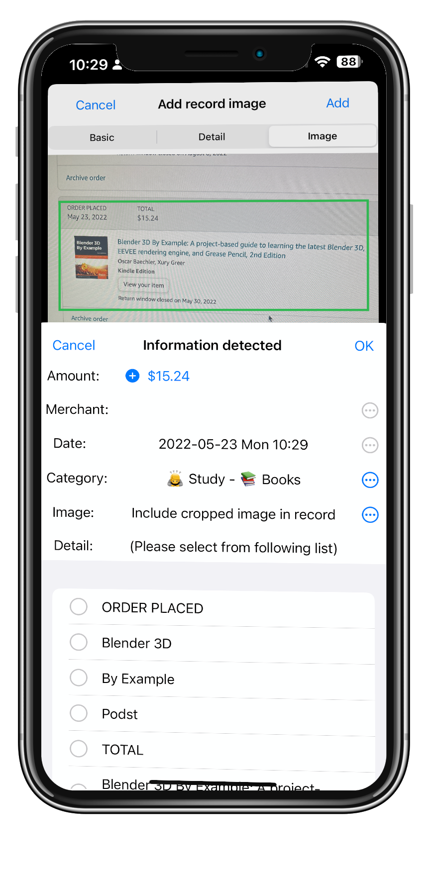 Support periodic expense tracking Analyze orders, receipts image using text classification, image recognition technology