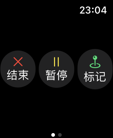 在Apple Watch上向左滑动界面,会显示控制界面,可以暂停/继续、结束、标记轨迹。结束轨迹记录后,可以在手机内置《健身》APP的体能训练中查看健身记录。