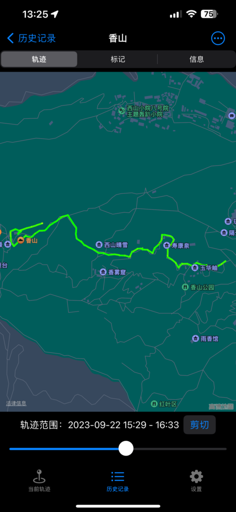 注意:如果轨迹位置与实际有偏移,可以点击右上角并选择“设置”,尝试打开或关闭“GPS位置修正”再重新记录。